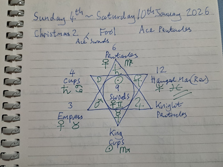 Note: I am using a revised set of astrological associations for each tarot card, so the planetary associations applied to the arcanae in 2026 may differ from those of earlier blog posts.
